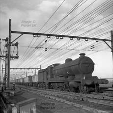O4 2-8-0 63661 with a loaded coal train under the wires at Wath 1/62 [102353]