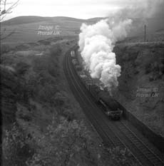 A4 Pacific 60027 "Merlin" at speed near Dunblane creates an impressive vapour trail 4/64 [102056]