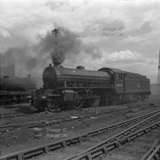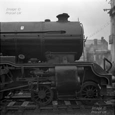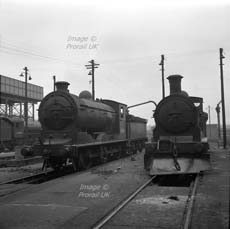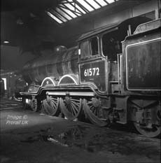 B12 61572 inside Willesden Shed with 46245 "City of London" in the roundhouse beyond 9/63 [102282]