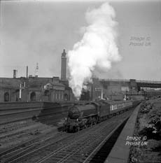 A3 4-6-2 60071 "Tranquil" climbing away from King's Cross passes the Goods Yards 5/60 [102087]