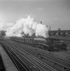 Gresley A4 Pacific 60017 "Silver Fox" speeds an East Coast express through Stoke 6/62 [102039]