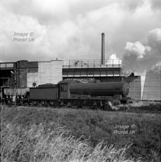 The steelworks supply the background for "ex works" Q7 0-8-0 63460 at Consett MPD 9/63 [102327]